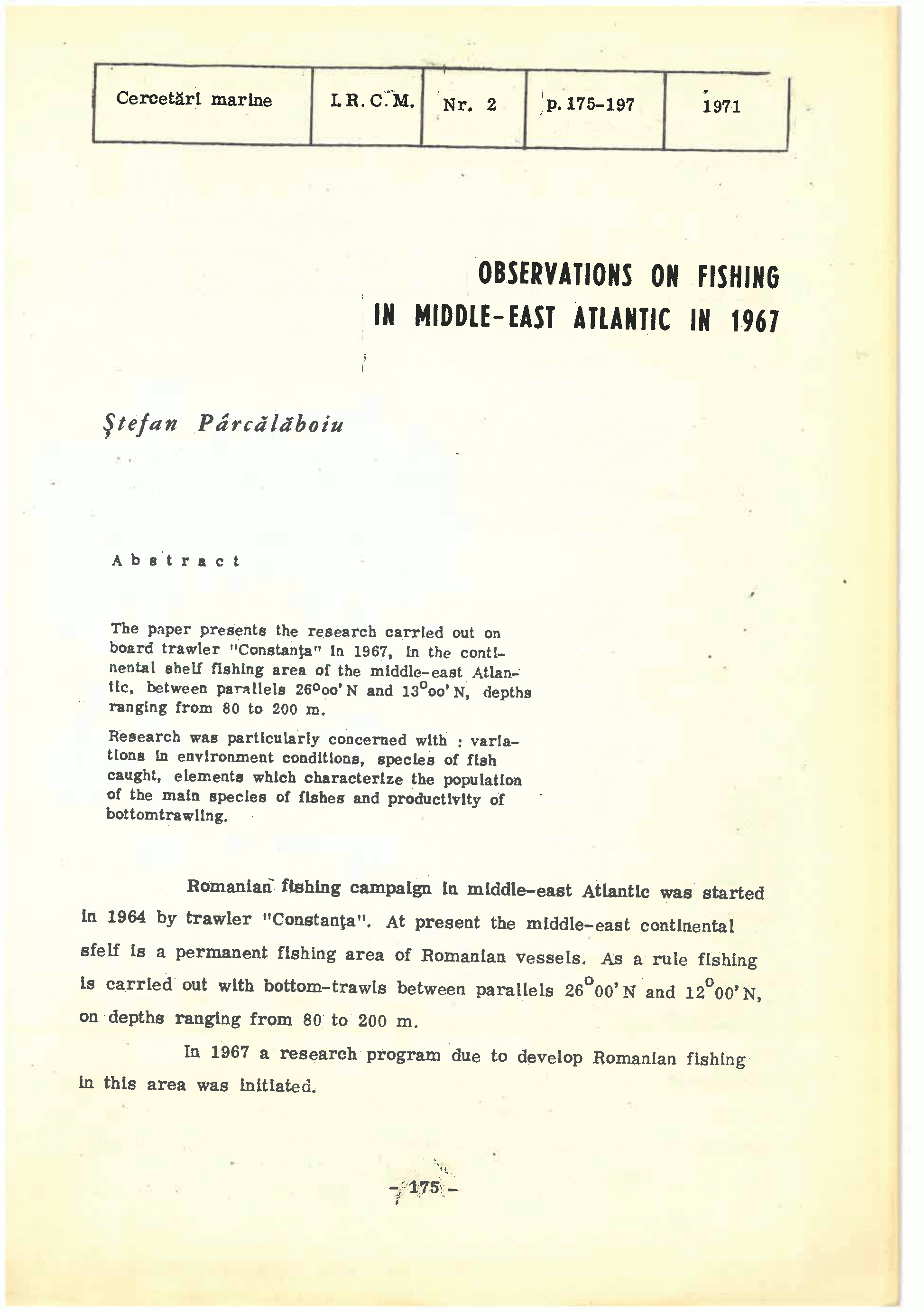 OBSERVATIONS ON FISHING IN MIDDLE-EAST ATLANTIC IN 1967