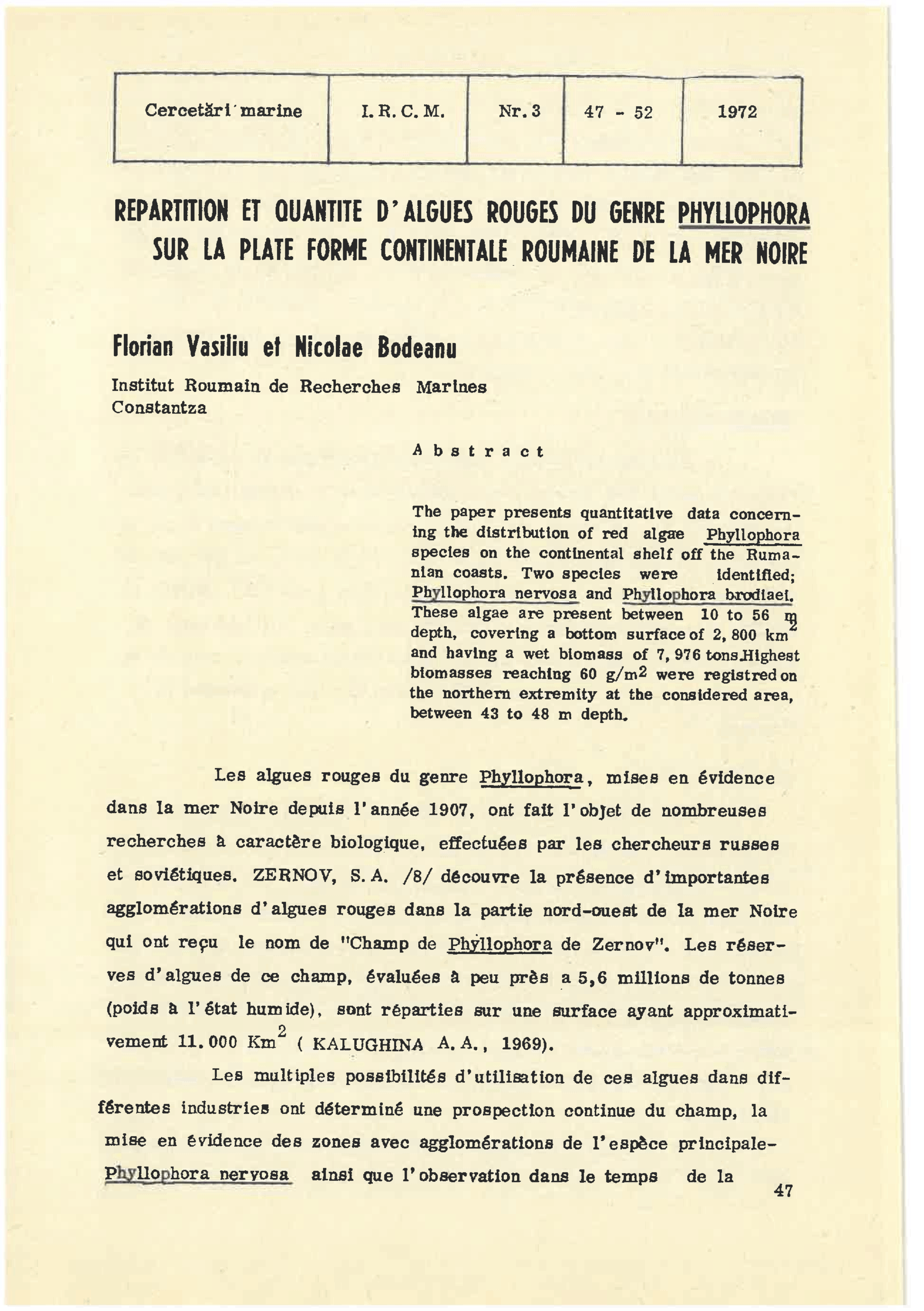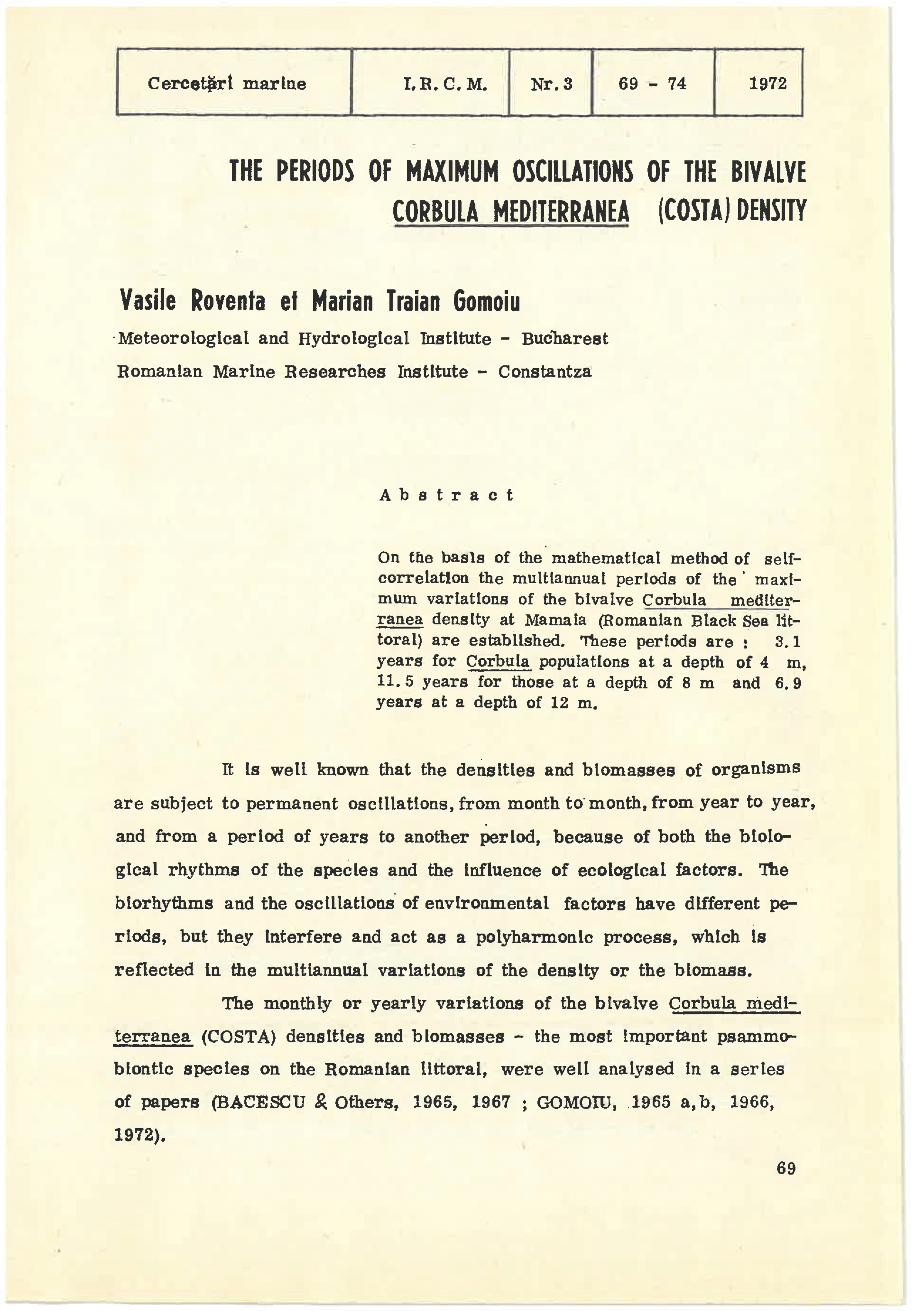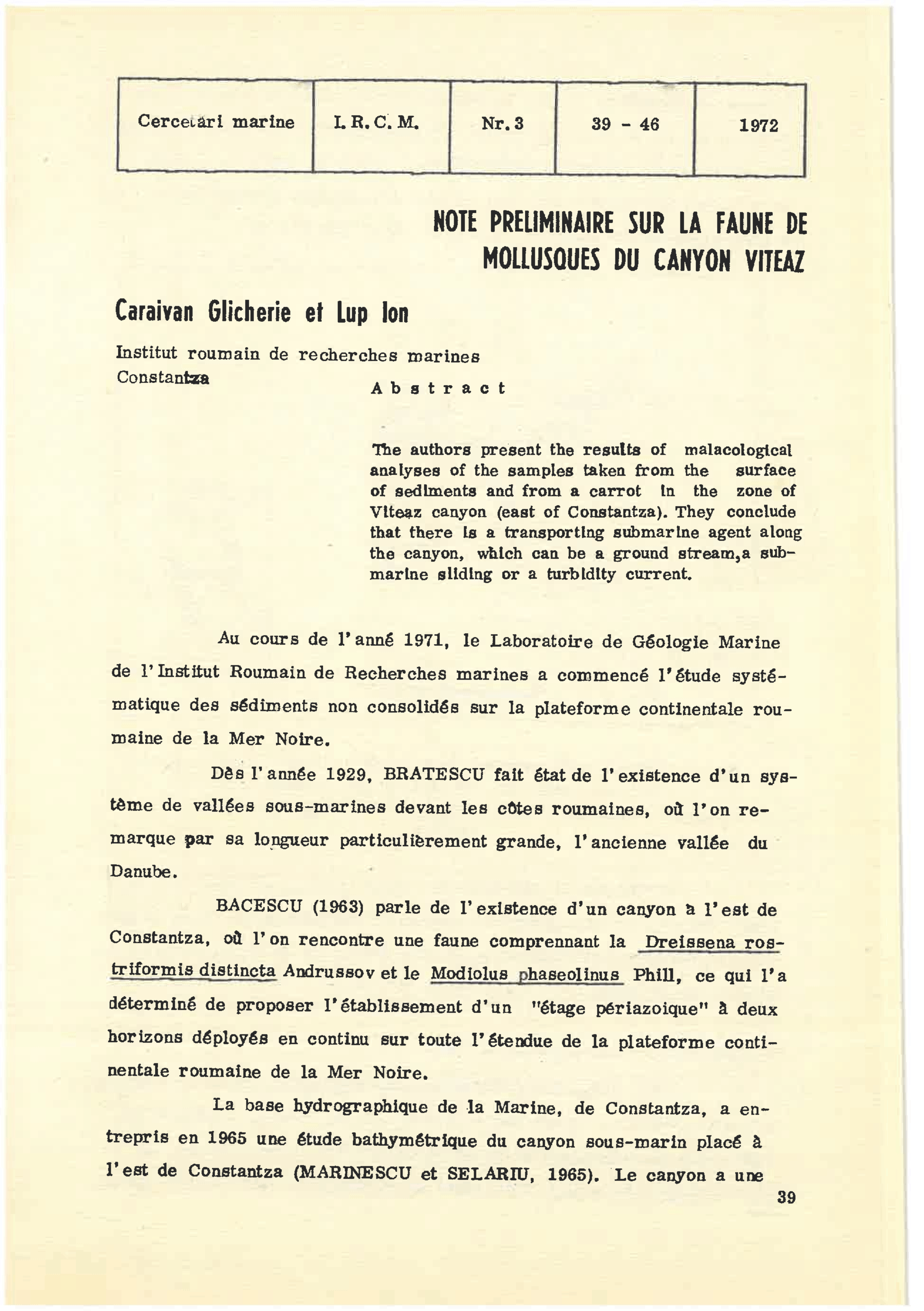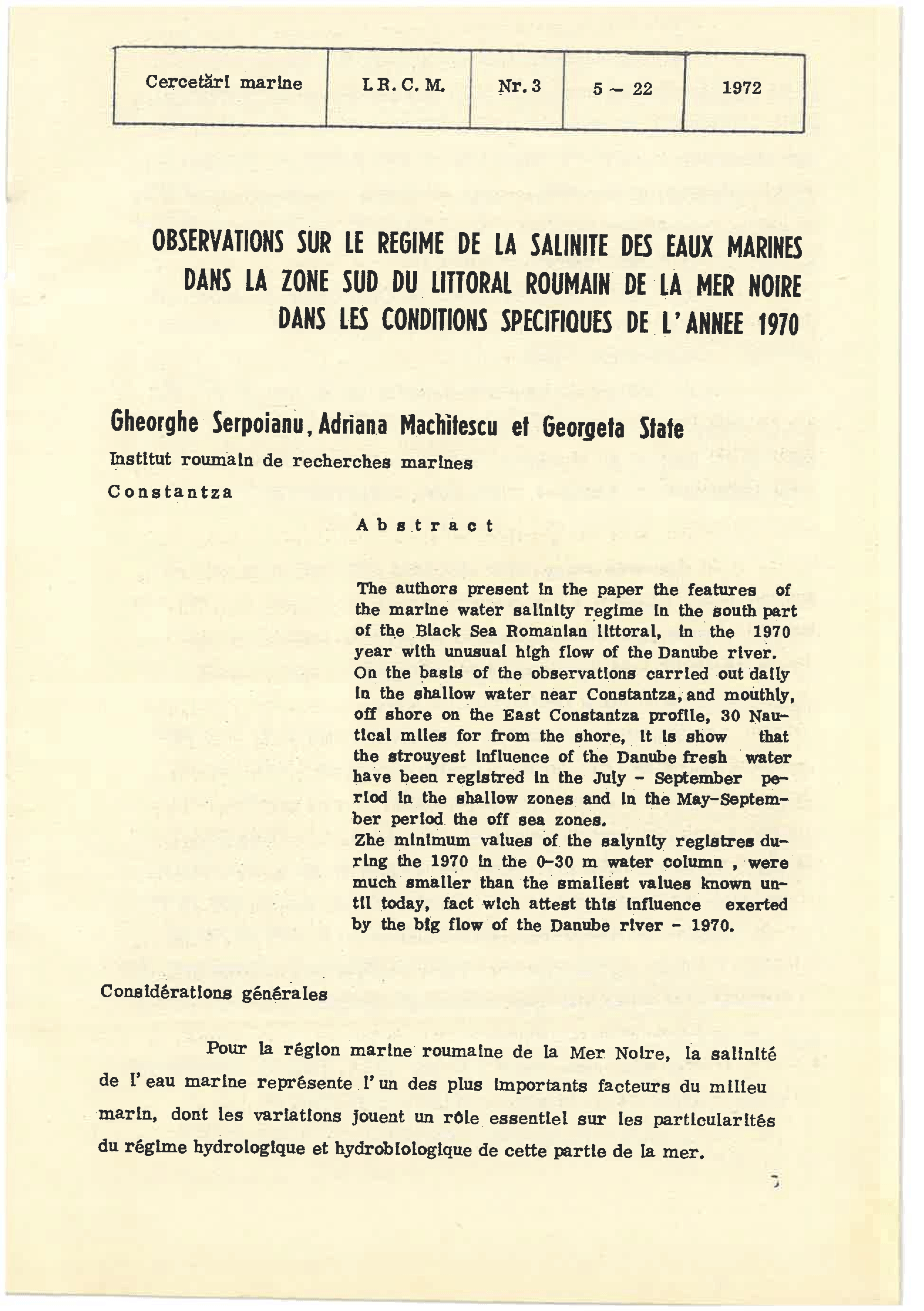 Vol. 3 No. 1 (1972): Cercetări marine - Recherches marines