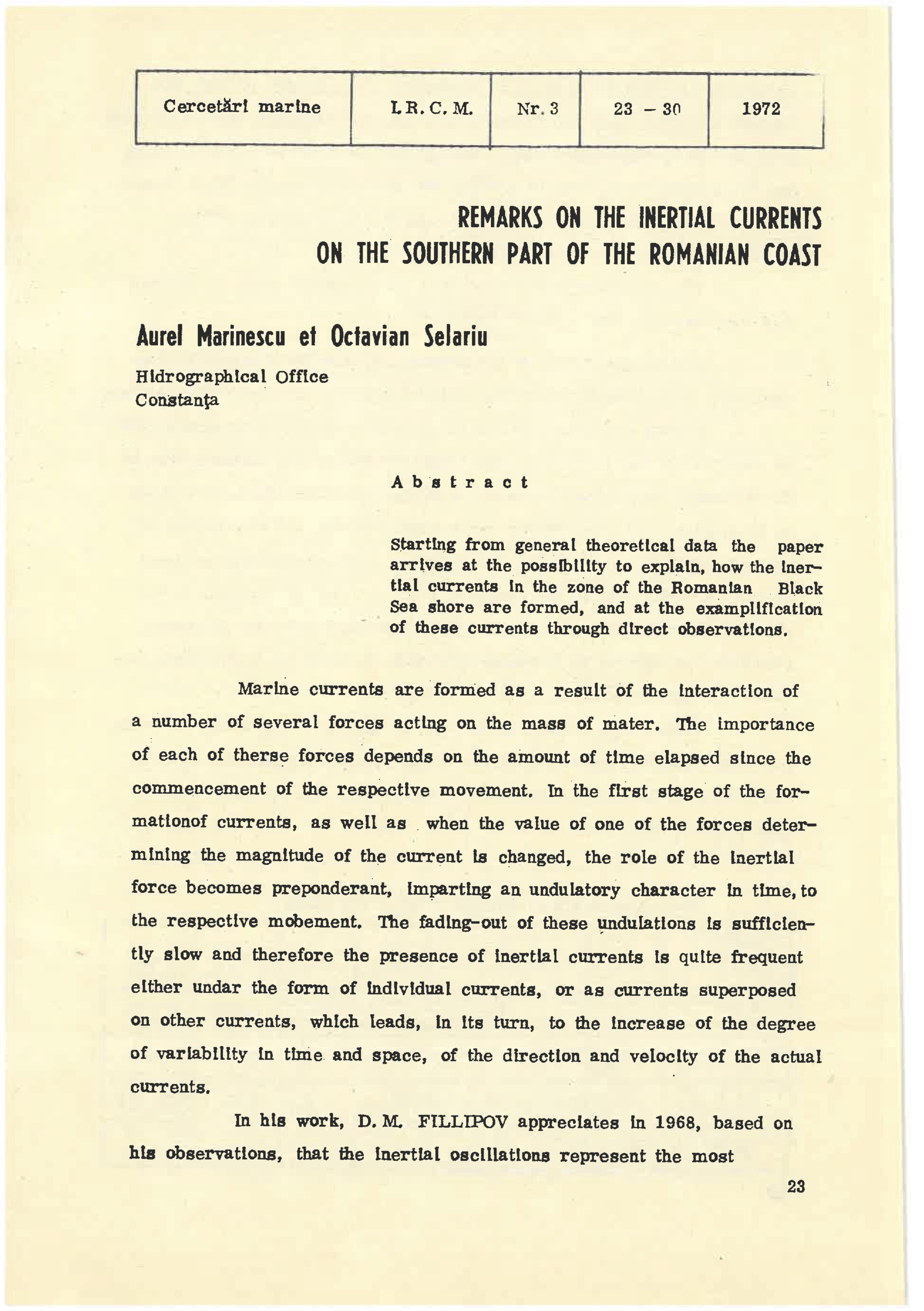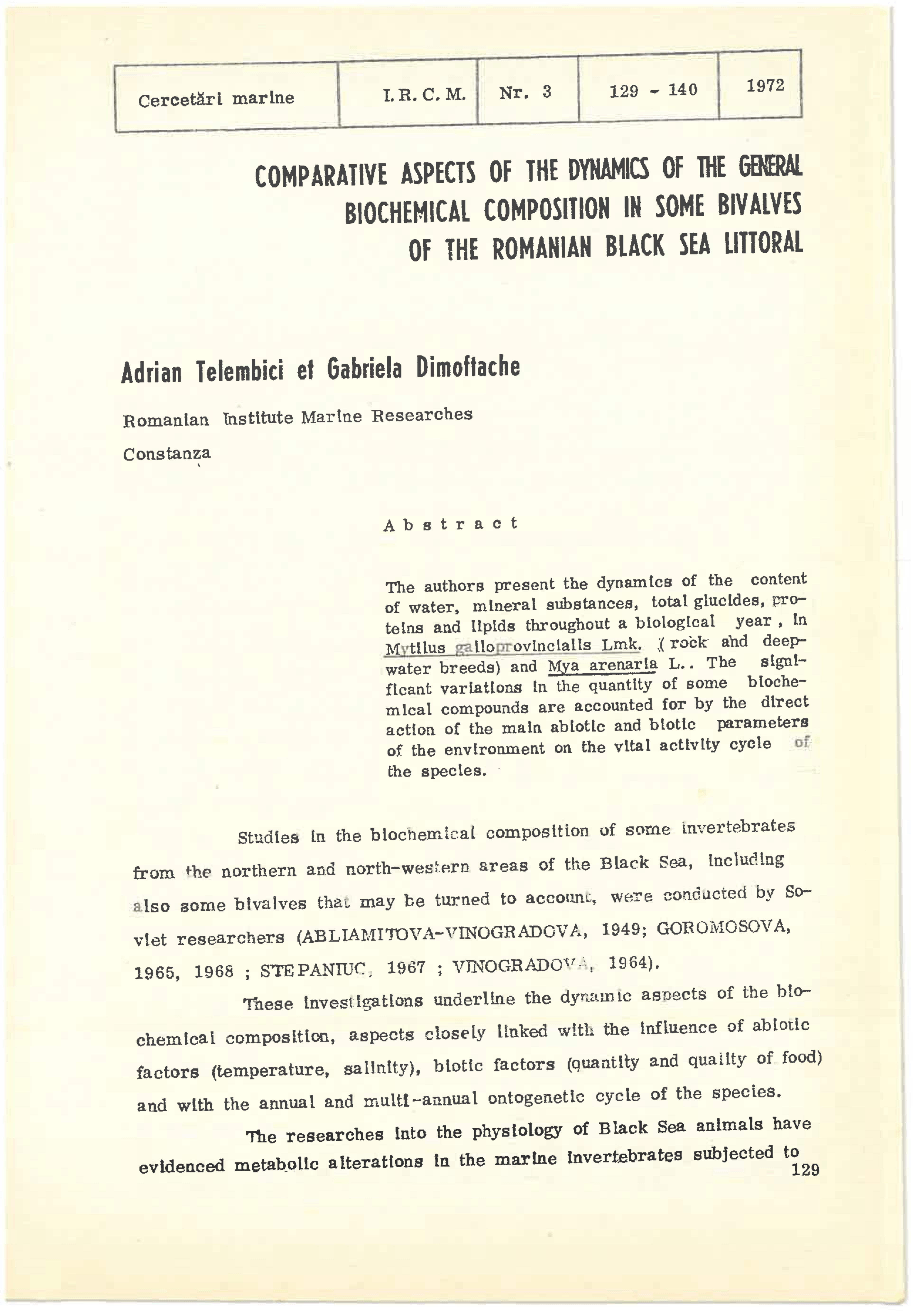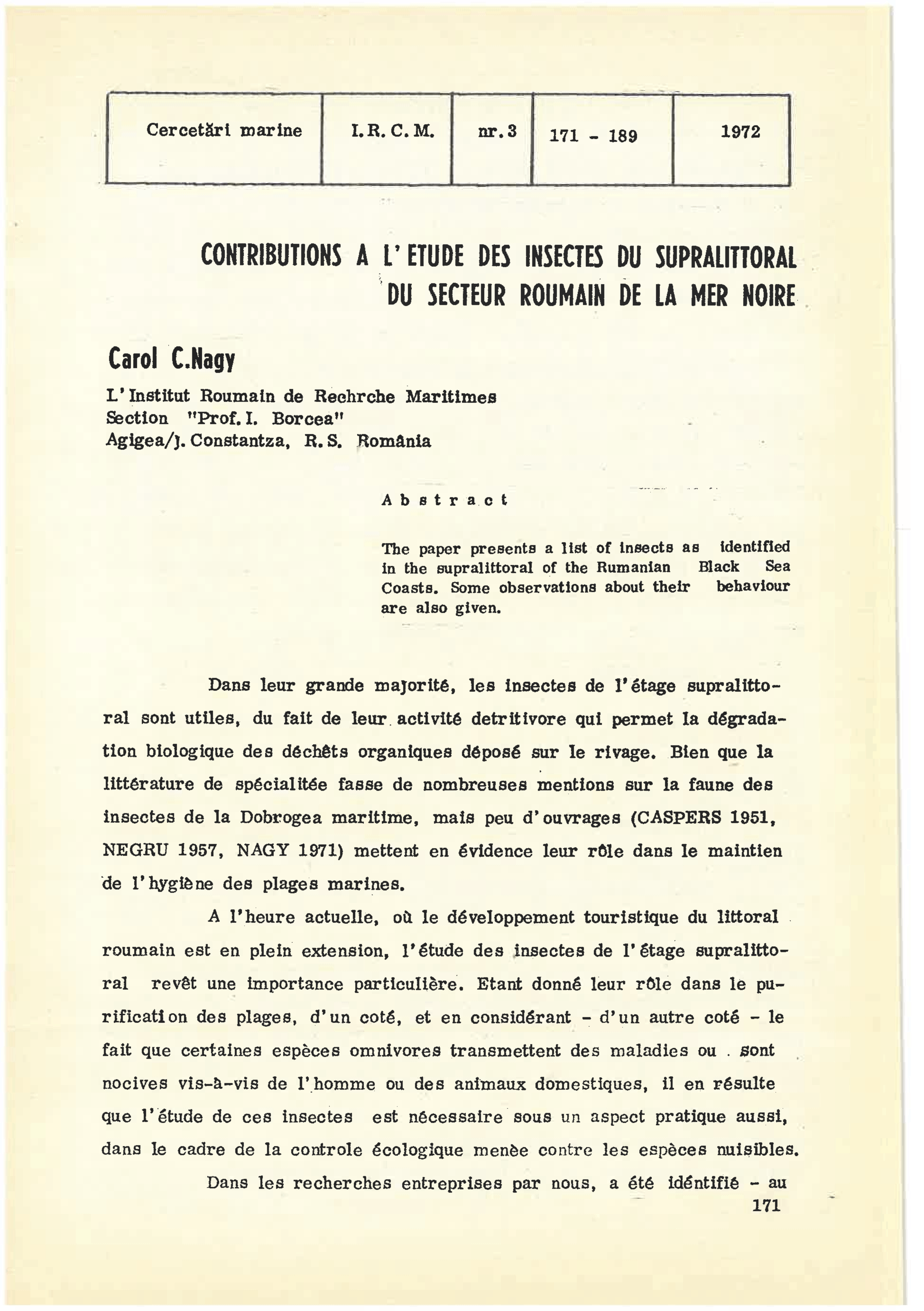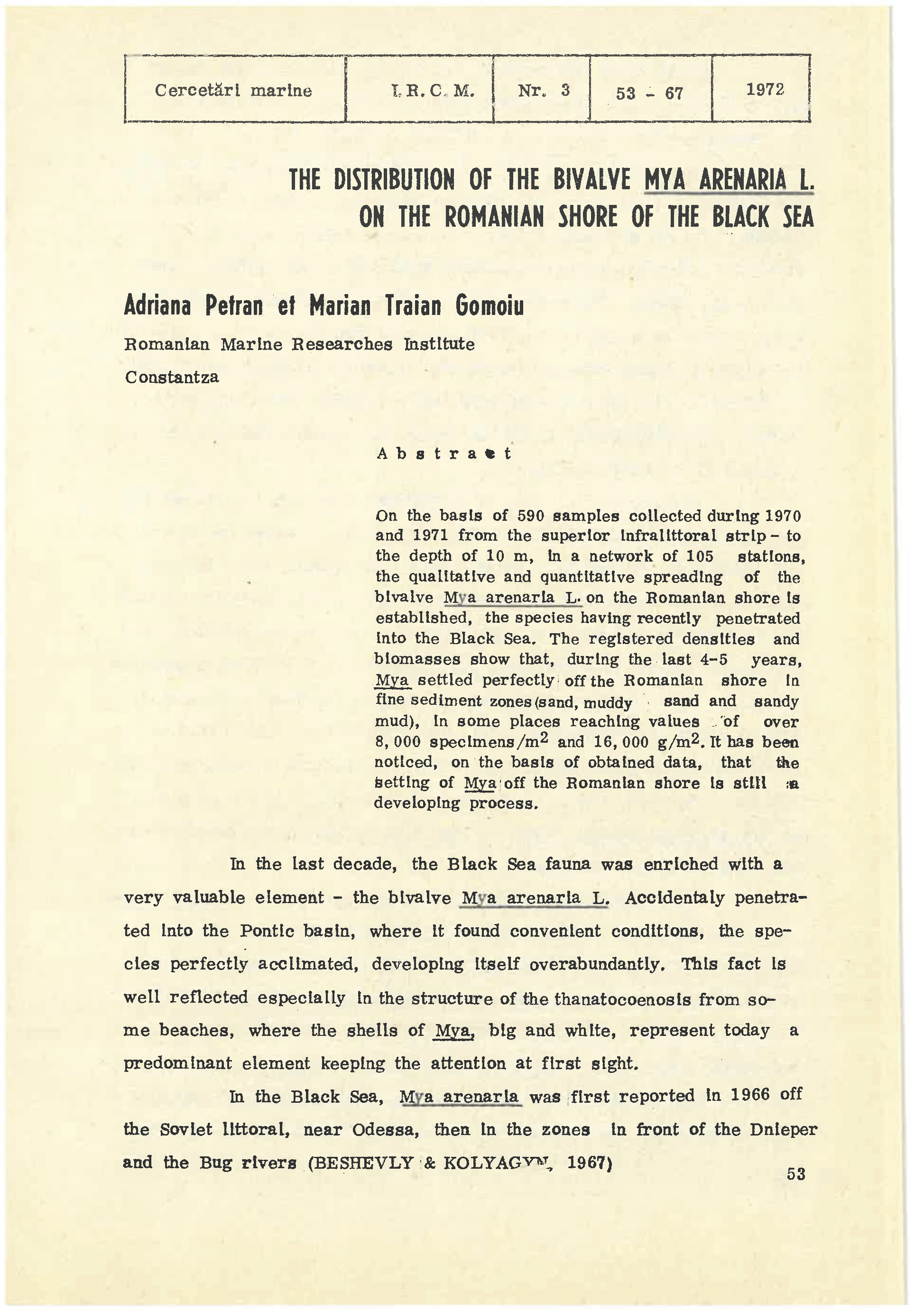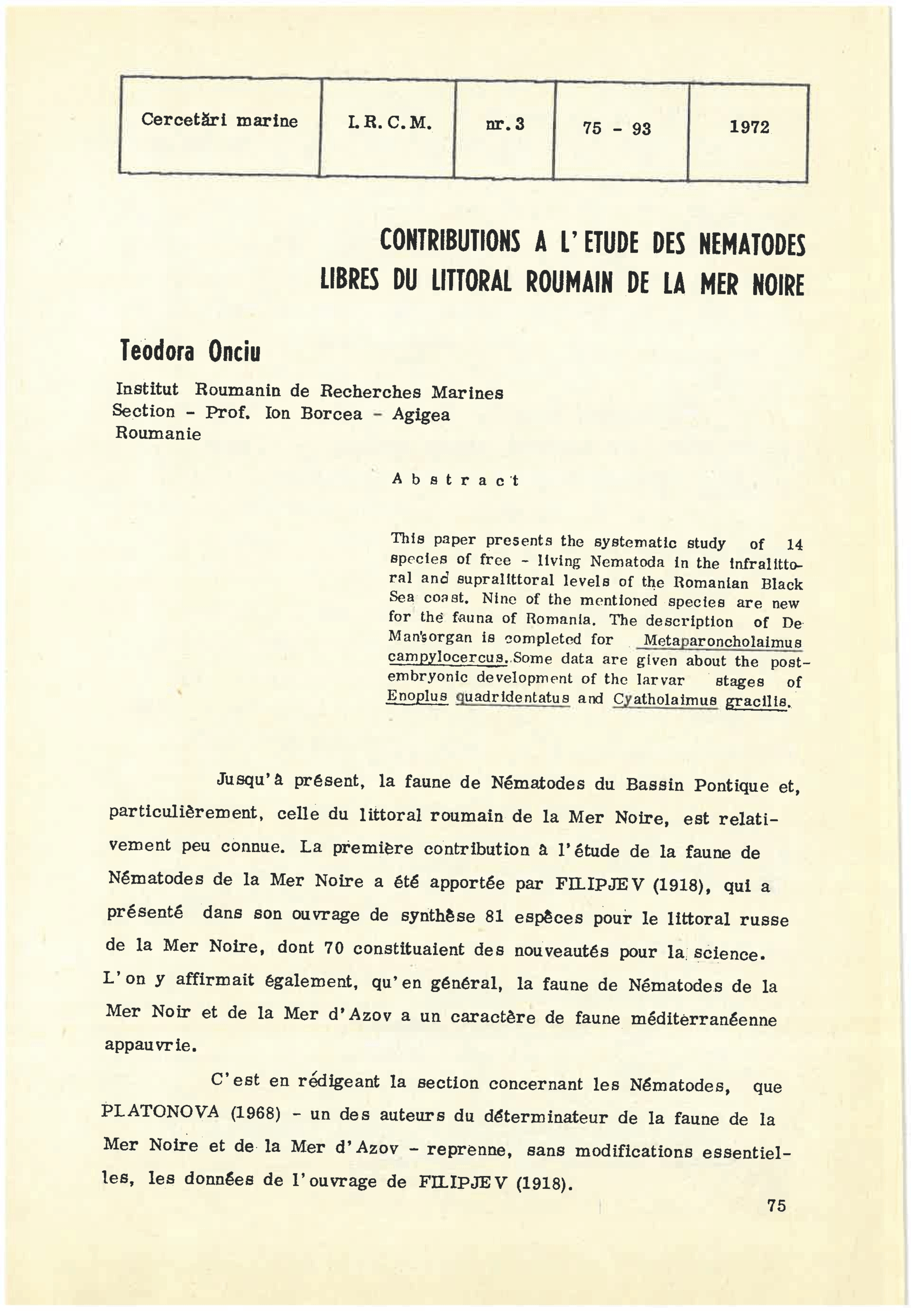 Vol. 3 No. 1 (1972): Cercetări marine - Recherches marines
