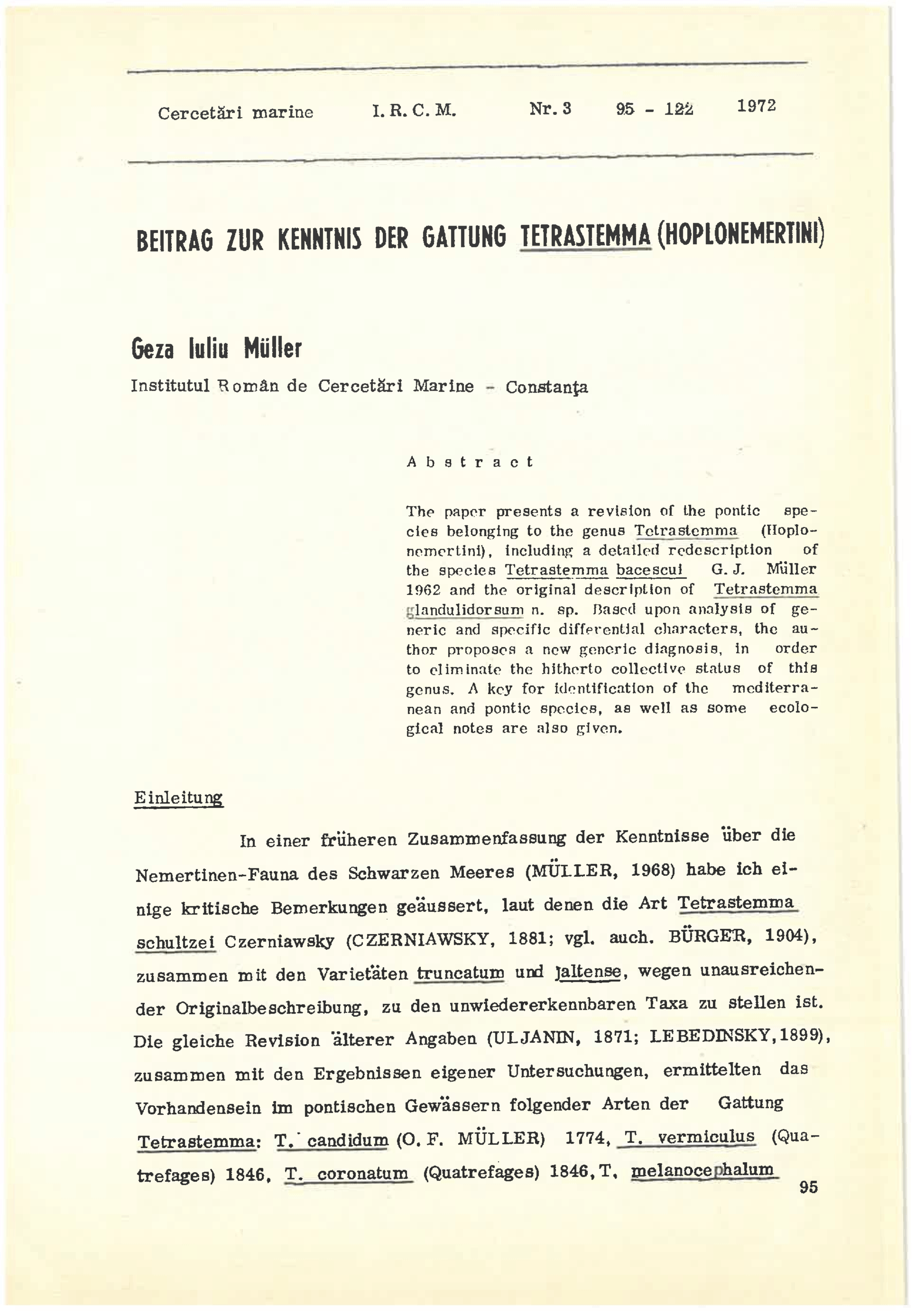 Beiirag zur kenntnis der gattukg tetrastemma (hoplonemertini)