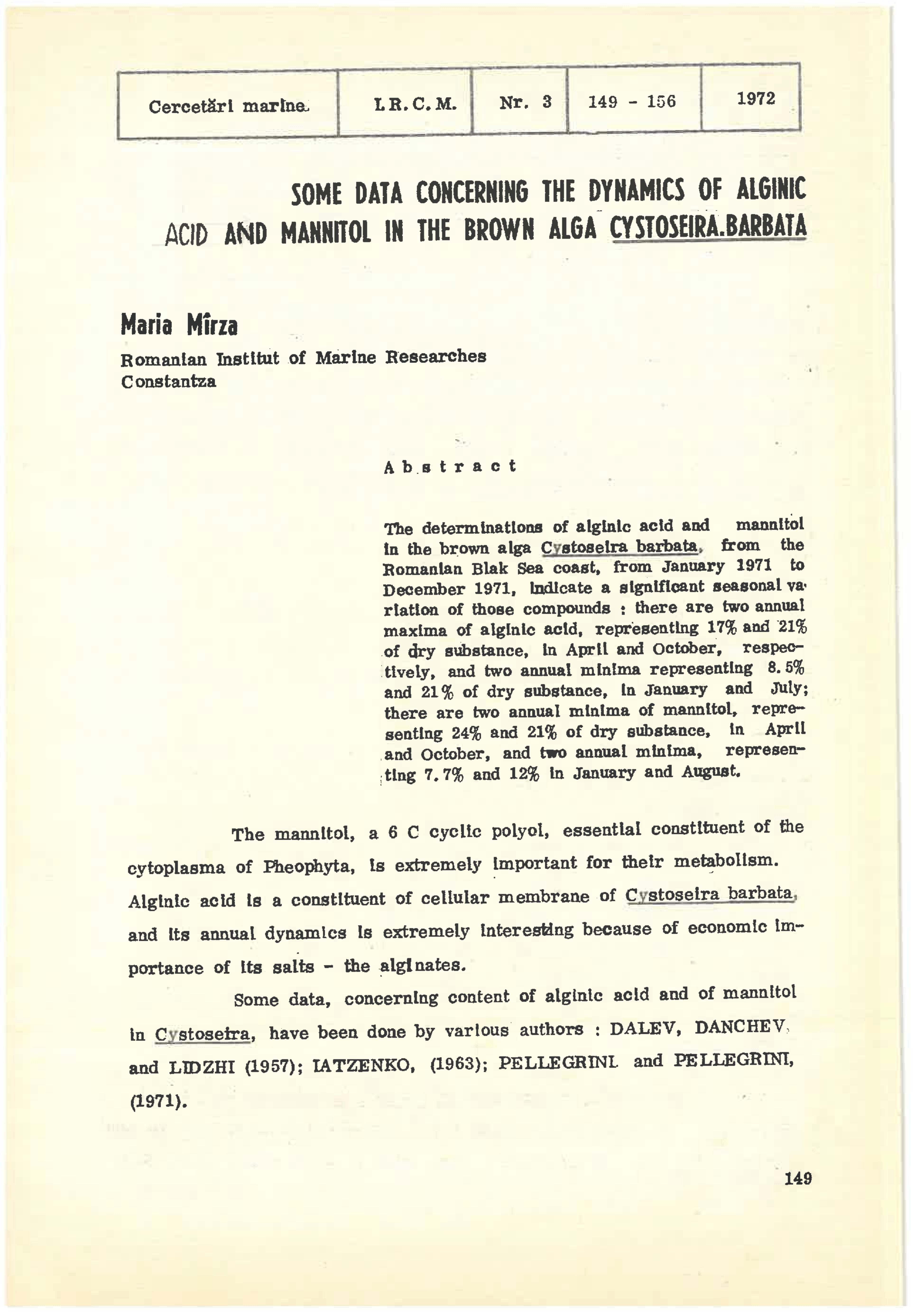 Some data concerning the dynamics of alginic acid and mannitol in the brown alga Cystoseira barbata